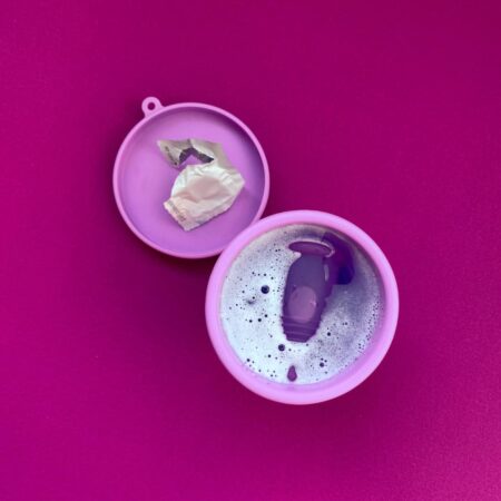 Hace años que se descubrió que es posible esterilizar tu copa menstrual con tabletas de limpieza para prótesis dentales. Éstos son un limpiador con oxígeno bioactivo que ayuda a eliminar las bacterias y gérmenes de la superficie de tu copa, así como para eliminar las manchas.